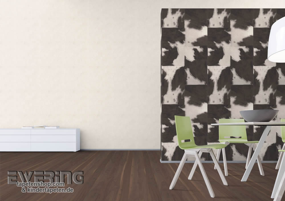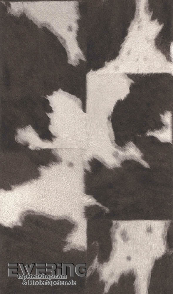 Grau, dunkel-braun, matt, feine Struktur, Vliestapete, Mustertapete, Kuhflecken, Kuh-Fell